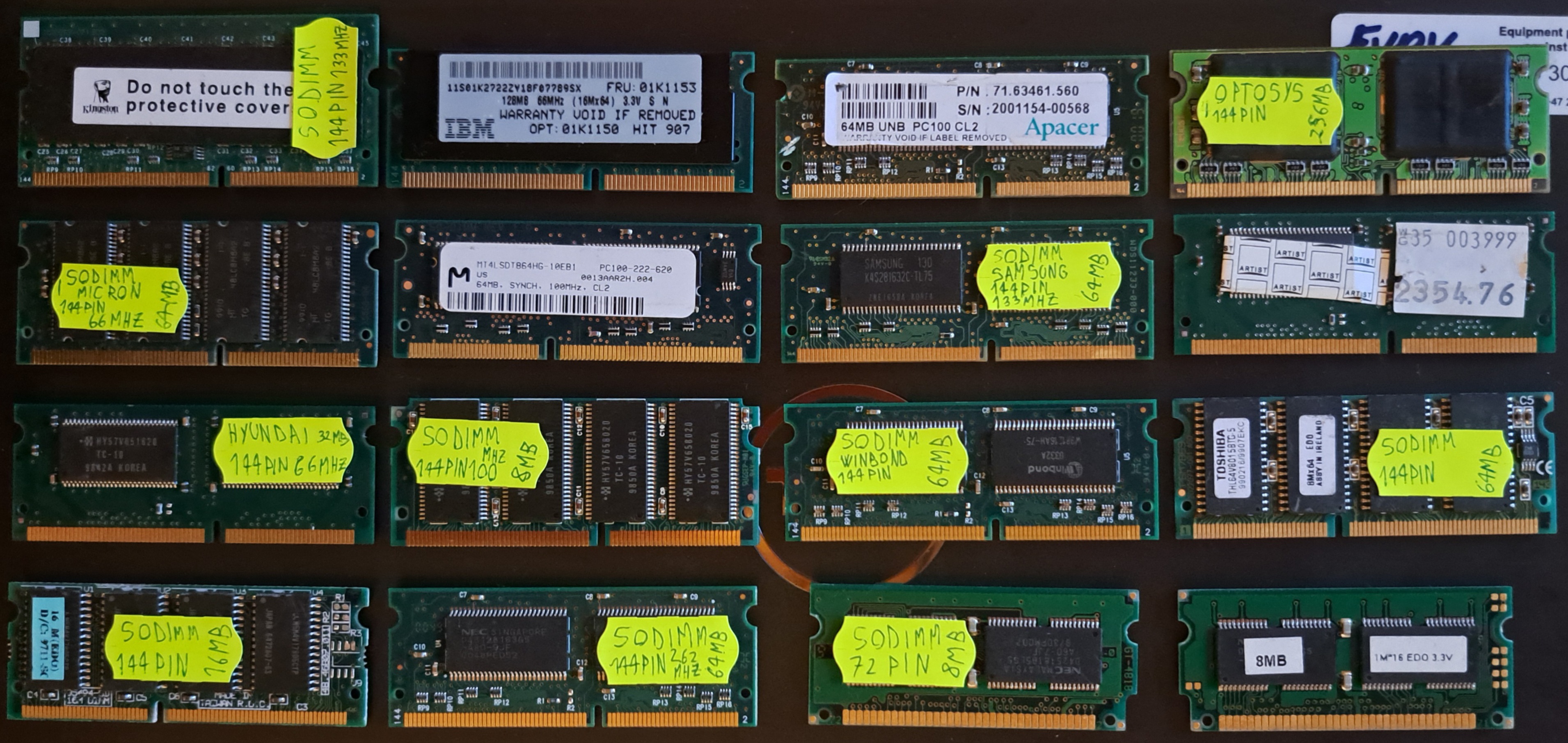 Weird ram types (SO-DIMM)DescriptionA SO-DIMM or small outline DIMM, is a smaller alternative to a DIMM, being roughly half the physical size of a regular DIMM. The first SODIMMs had 72 pins and were introduced by JEDEC in 1997. Before its introduction, many laptops would use proprietary RAM modules which were expensive and hard to find. source: Wikipedia (of course)